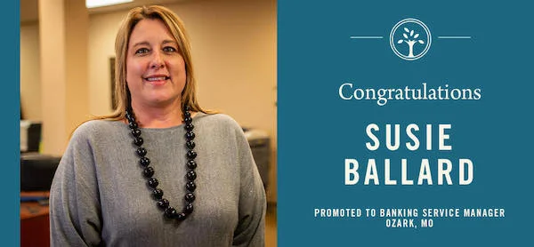 (APRIL 28, 2015 – OZARK, MO) Southern Bank announced Susie Ballard as the new Banking Service Manager for Southern Bank’s Ozark branch. Ballard has been with Southern Bank since March of 2012.